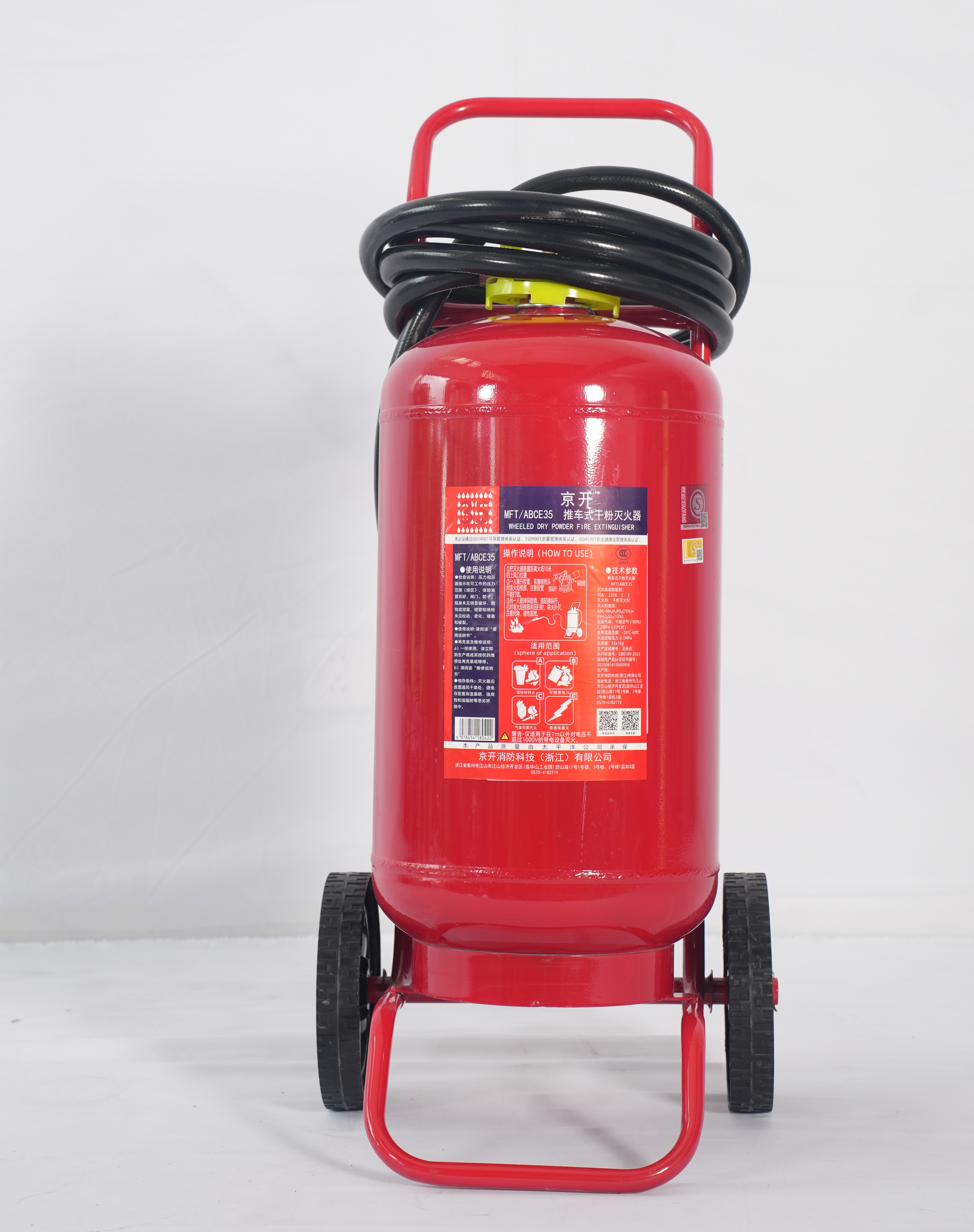 推车干粉灭火器适用于扑灭可燃固体、可燃液体、可燃气体与带电设备的初起火灾。广泛用于工厂、仓库、船舶、加油站、配电房、车辆等厂所。